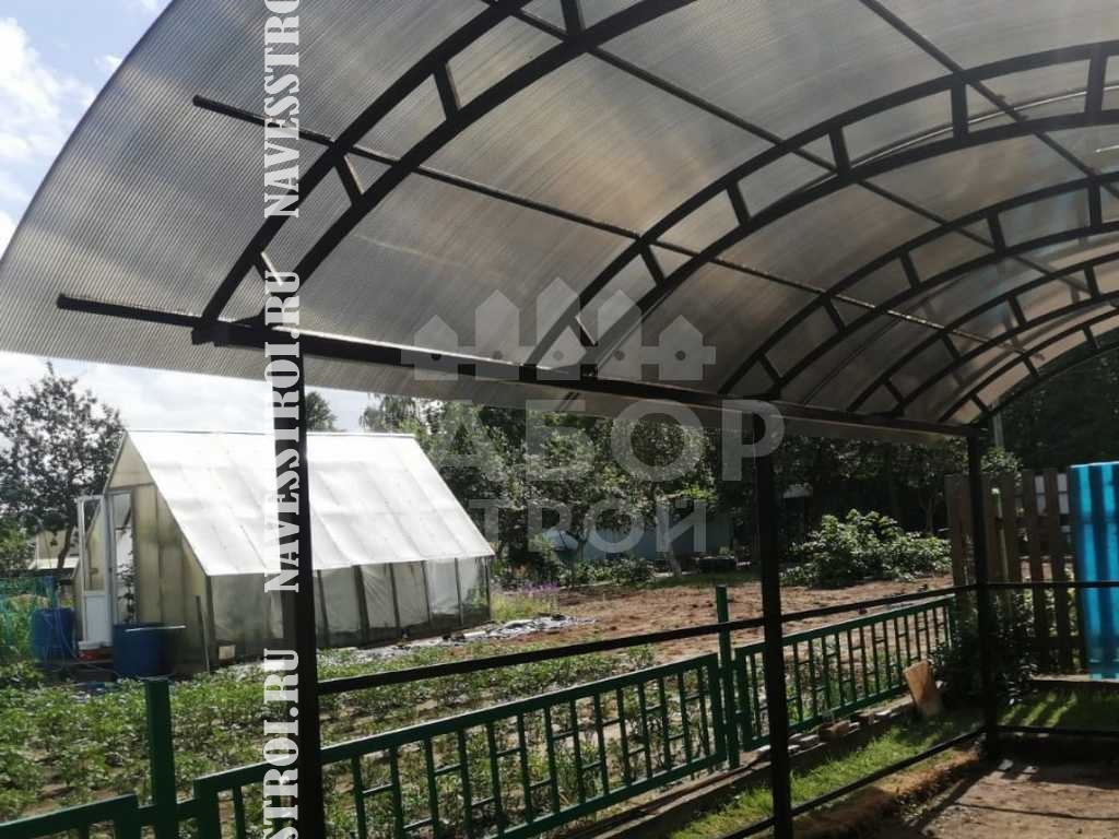 За день на даче изготовили арочный навес 5 на 7 с покрытием поликарбоната. Привезли уже готовые крашенные фермы и весь остальной материал. Все за собой убрали и увезли мусор. Молодцы!